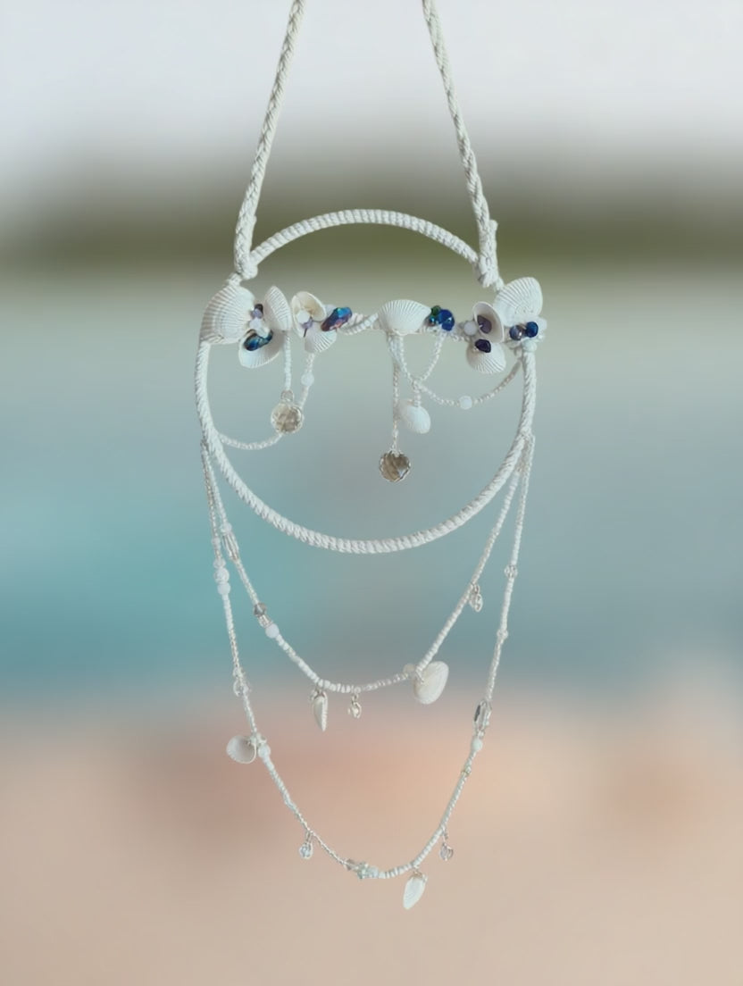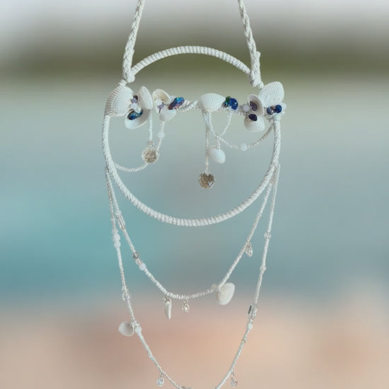 ARIEL features Rainbow Aura Quartz, a beautifully vibrant crystal known for its uplifting and soothing energy. This radiant stone is believed to help balance emotions and inspire a sense of peace and clarity. Paired with natural sea shells and glass beads, ARIEL offers a supportive reminder of the ocean’s calming embrace, encouraging you to find tranquility and strength in every moment.