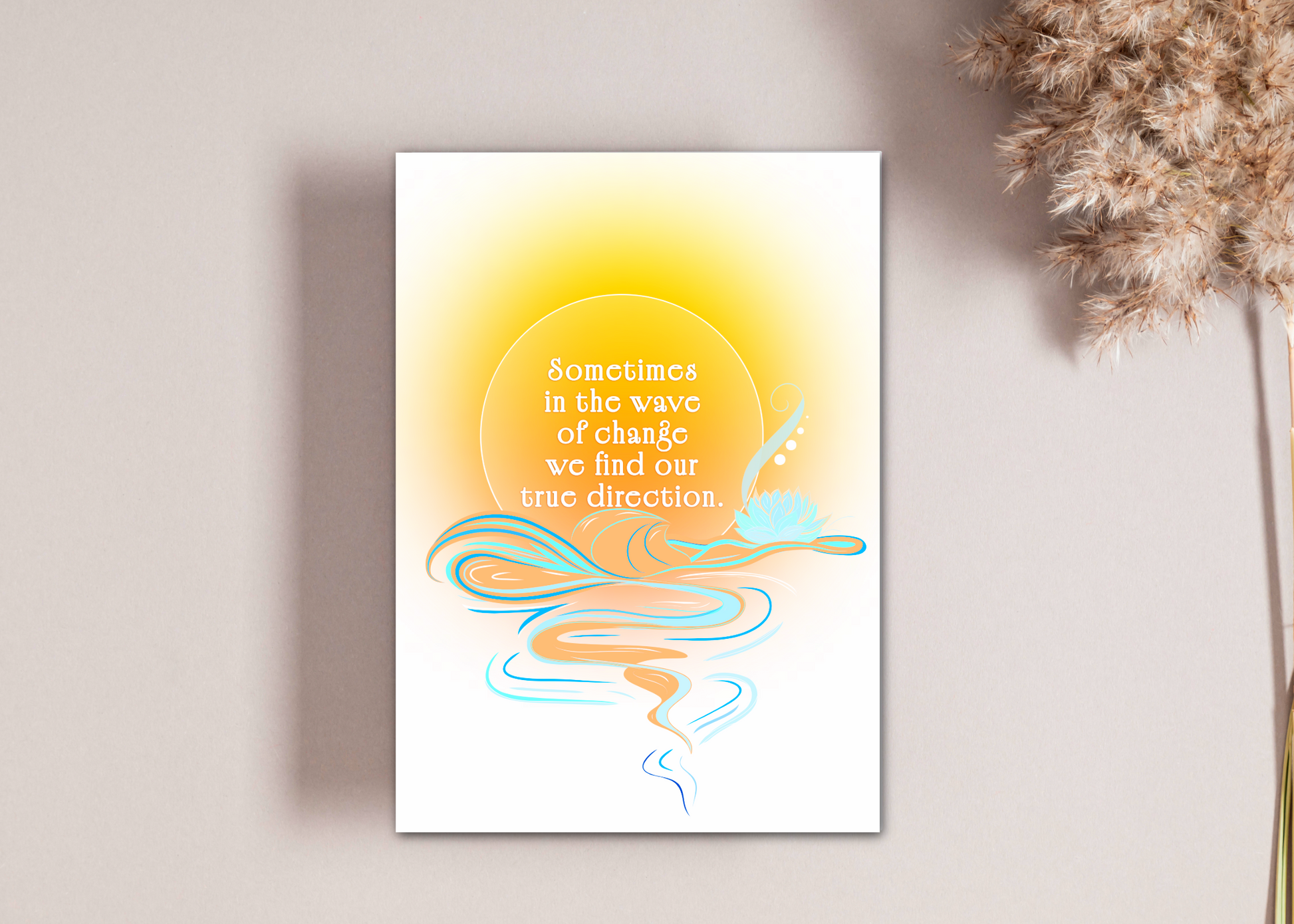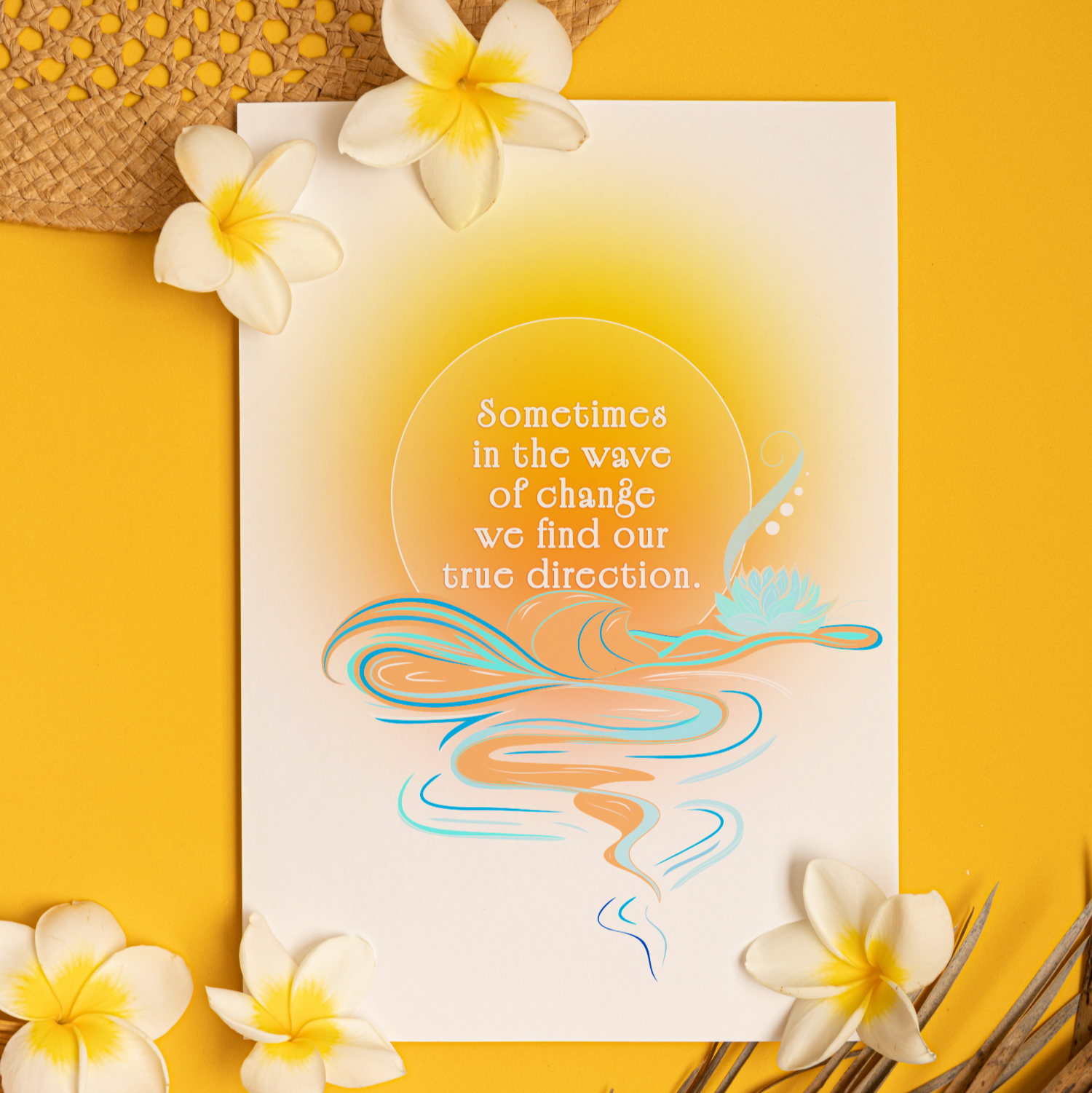 THE WAVE OF CHANGE invites you to ride the tides of transformation with a playful spirit and bold heart. Designed to inspire and energize, this piece encourages embracing new beginnings and flowing with life’s surprises. Perfect for those ready to make a splash, it keeps the vibe light while celebrating growth and the joyful journey of change. Let THE WAVE OF CHANGE be your reminder that every shift holds the promise of something exciting ahead.