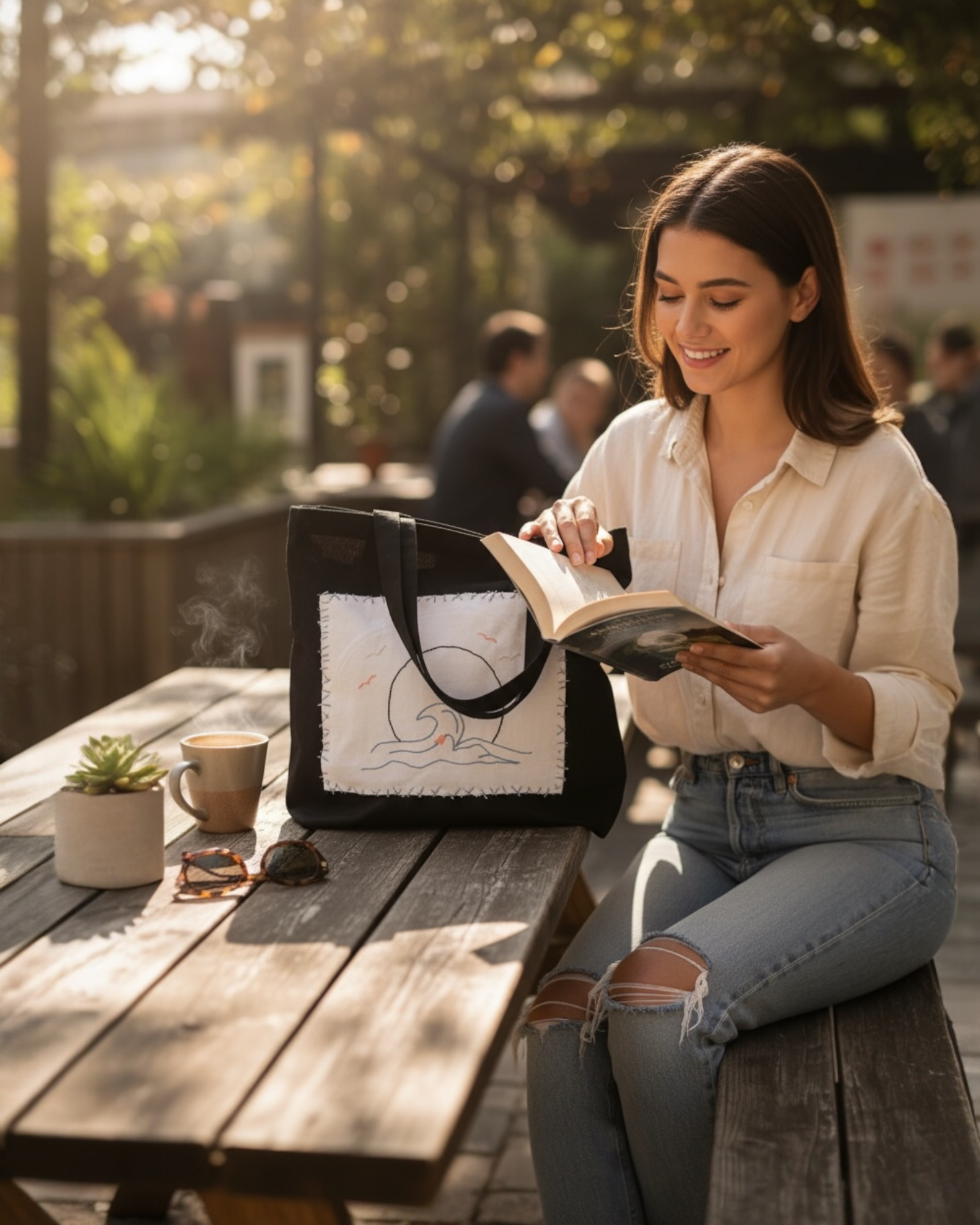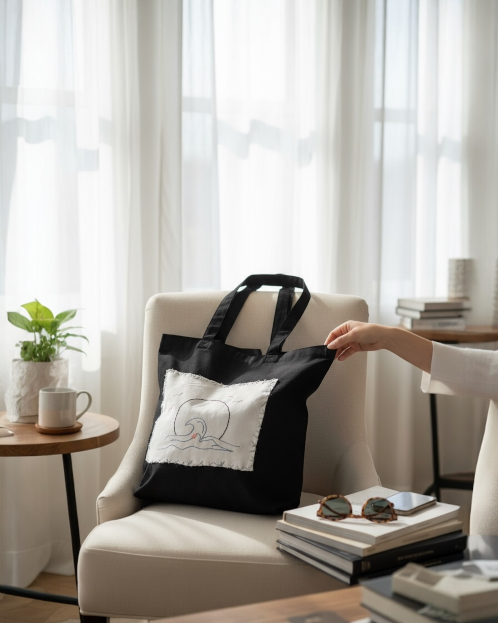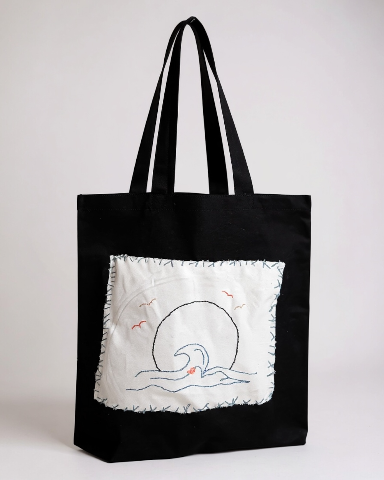 Experience the Ride the Wave tote, expertly hand-stitched from 100% cotton. With exclusive original artwork, this bag guarantees you'll be the only one with its unique style. Easy to care for—just hand wash in cold water and hang dry. Whether for daily errands or beach days, this versatile bag is the perfect choice to elevate your look.
