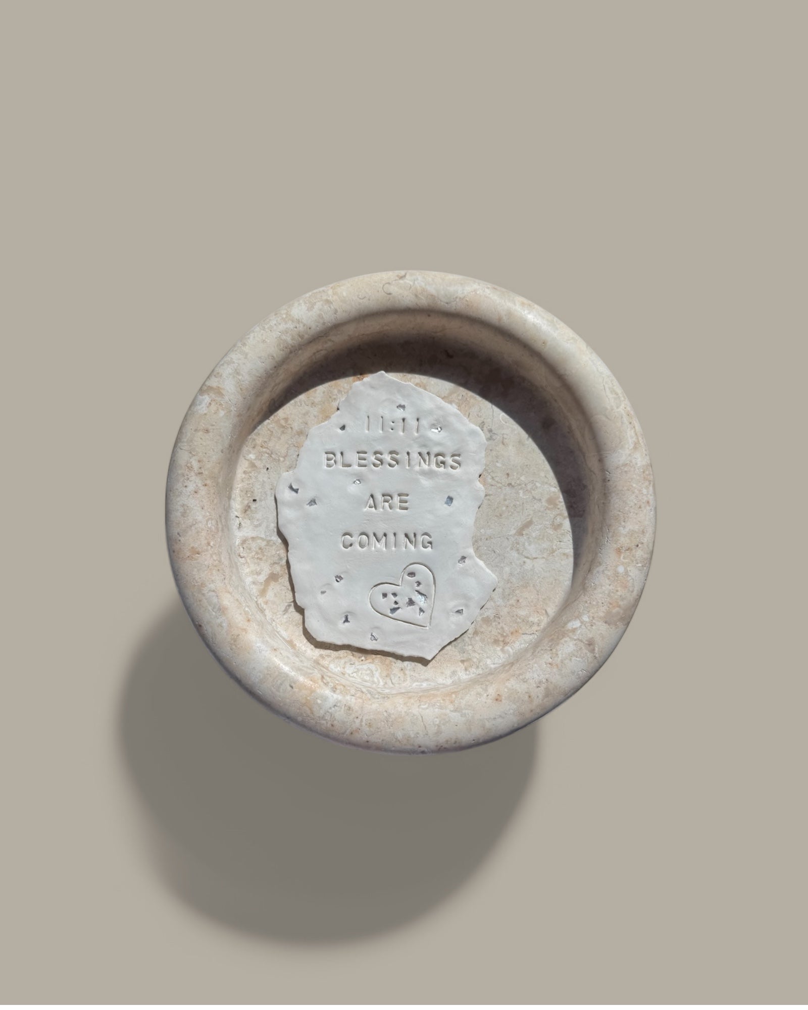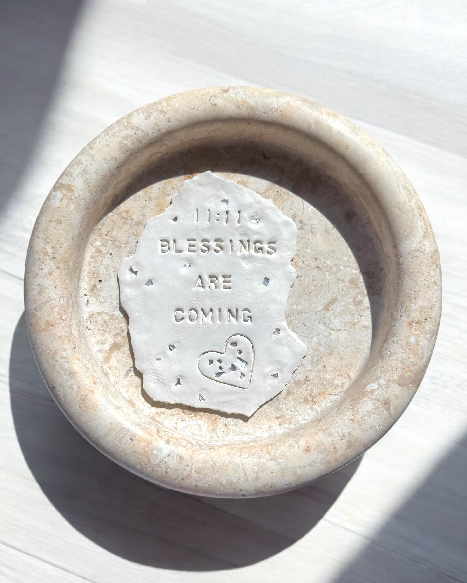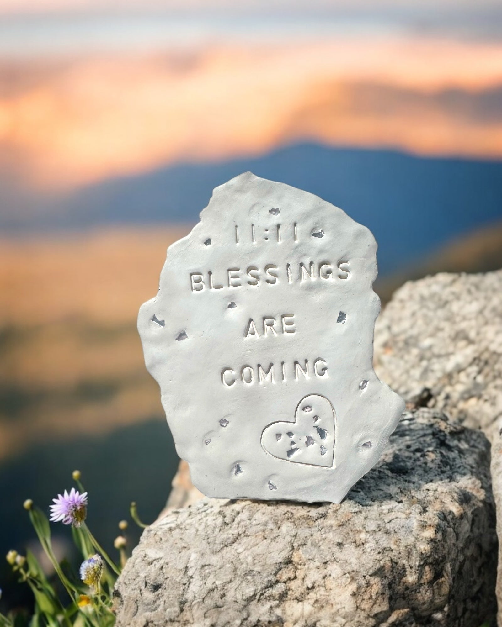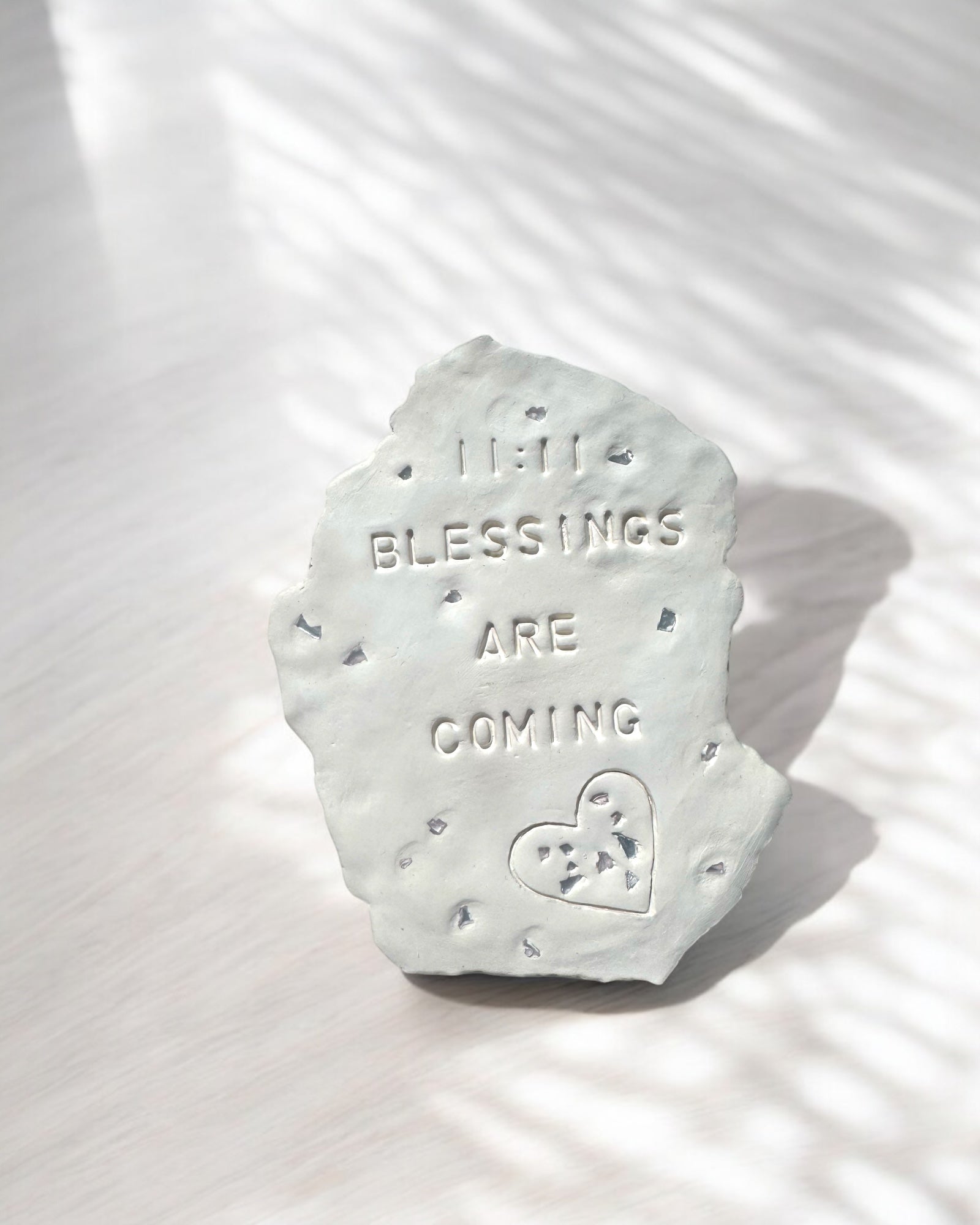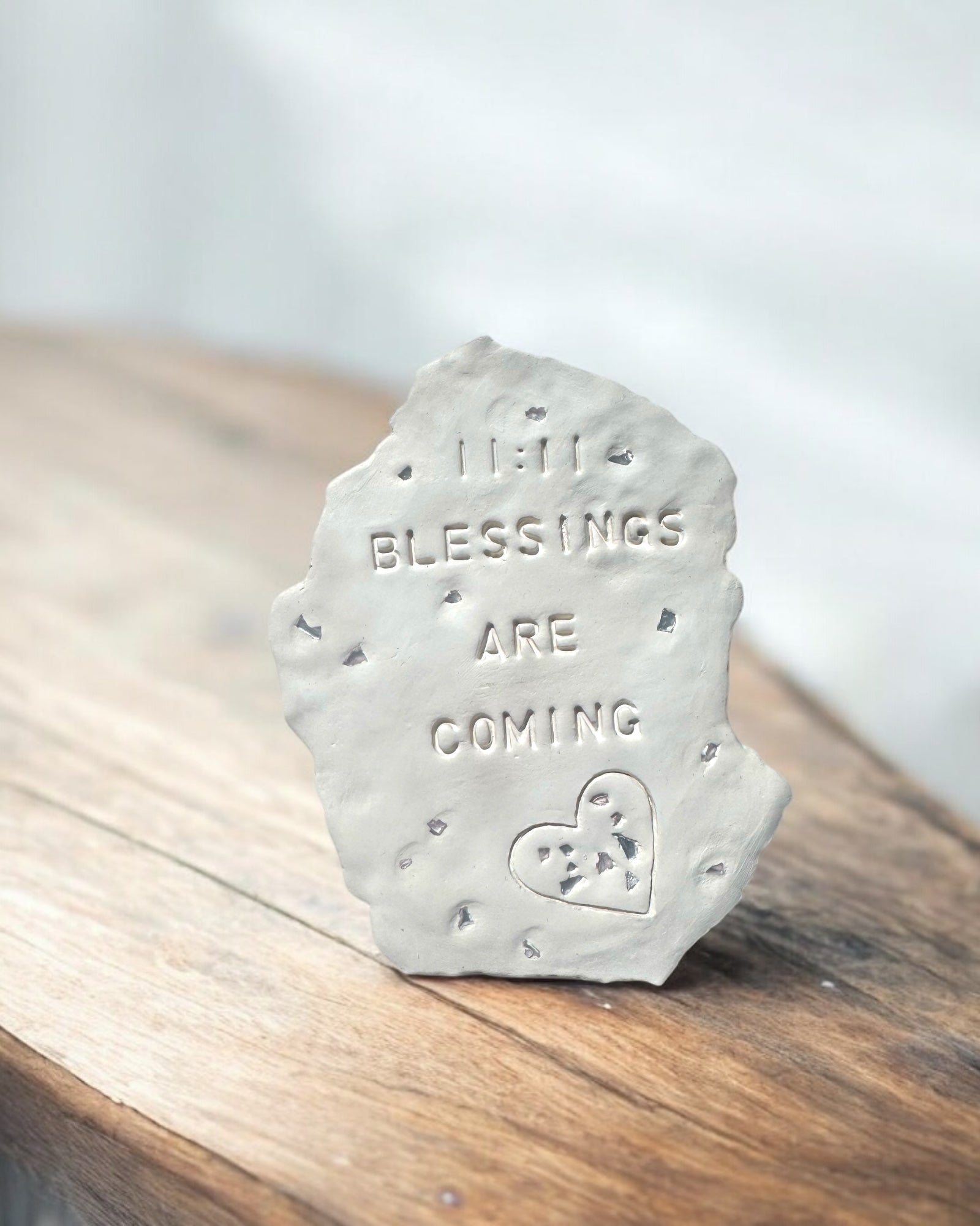 Each handcrafted piece of sculpting clay features an inspirational quote embedded within, conveying a lovely positive message to keep you motivated. Perfect for any tabletop or propped up on a bookshelf, this unique home decor is a daily reminder of blessings to come.