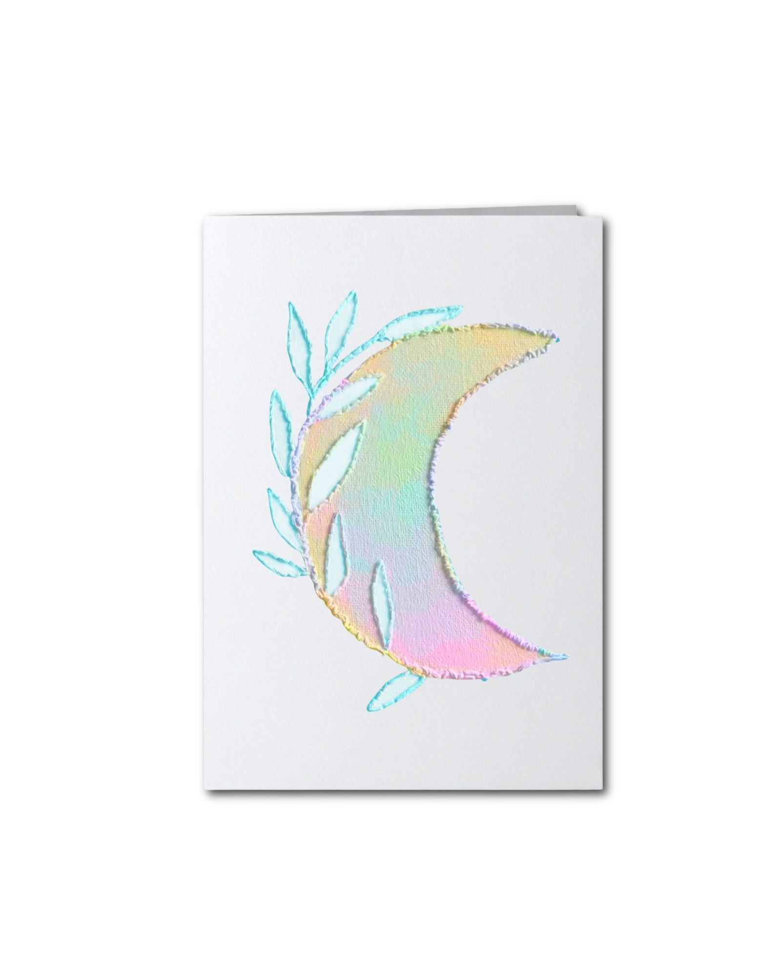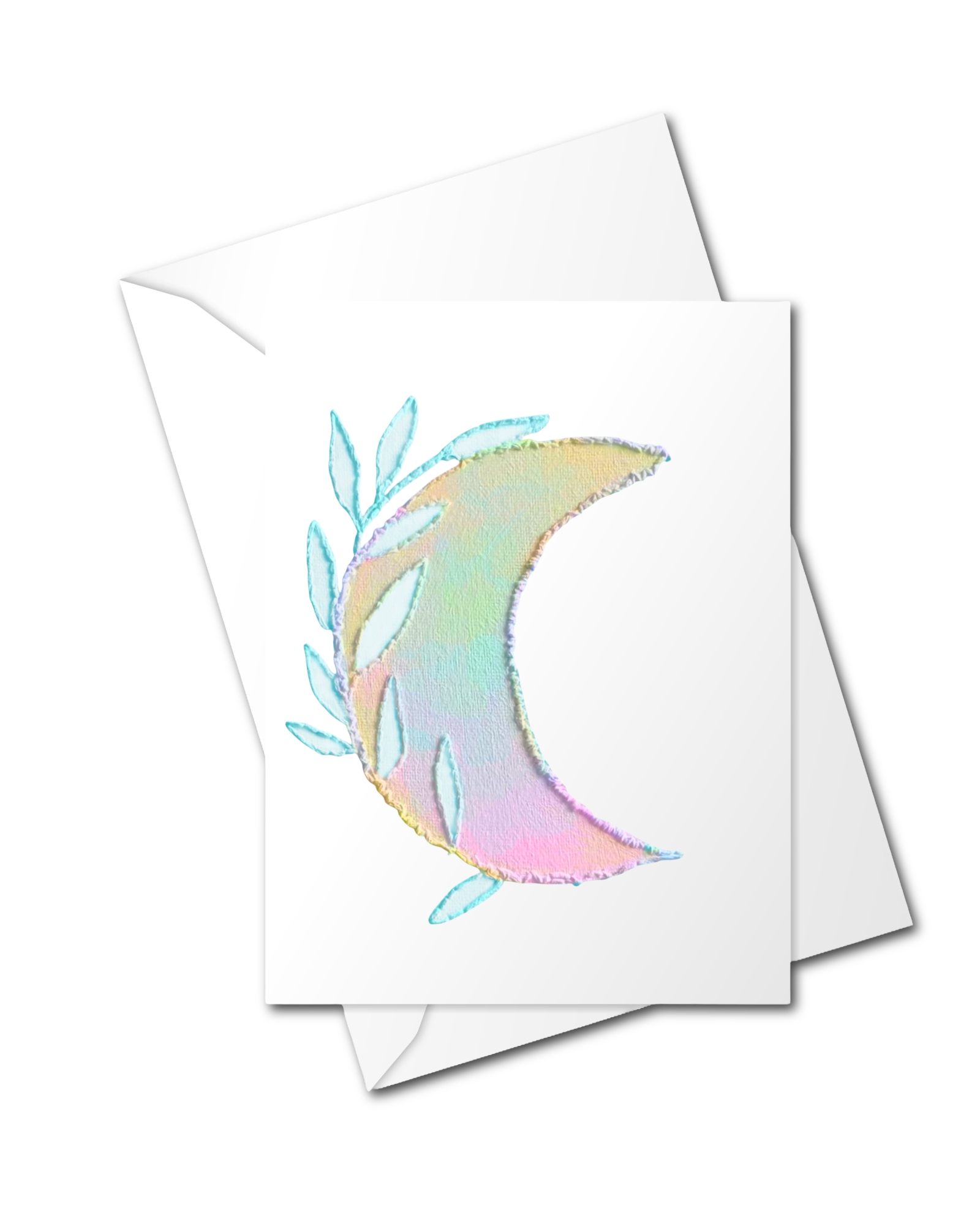 Celebrate your love for the moon with this sweet and dainty 4x6 greeting card featuring a charming crescent moon design. Printed on textured watercolor paper, it captures the beauty of an original painting turned into art you can share. Blank inside, it’s perfect for any message you want to send. Comes with a matching envelope, ready to make someone’s day a little more magical.