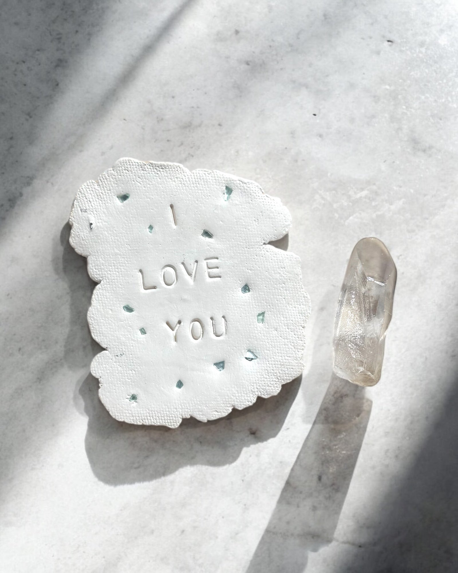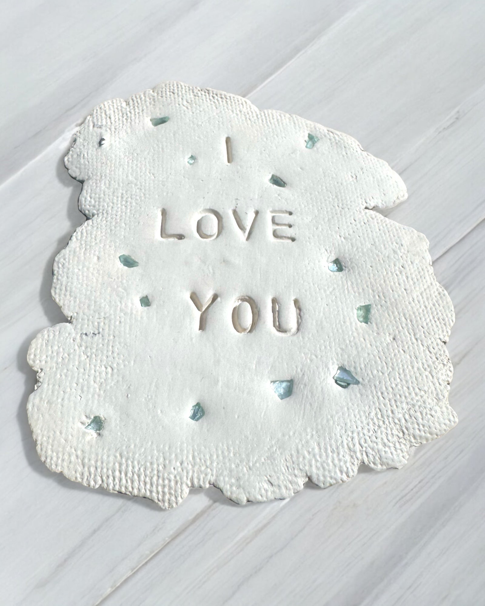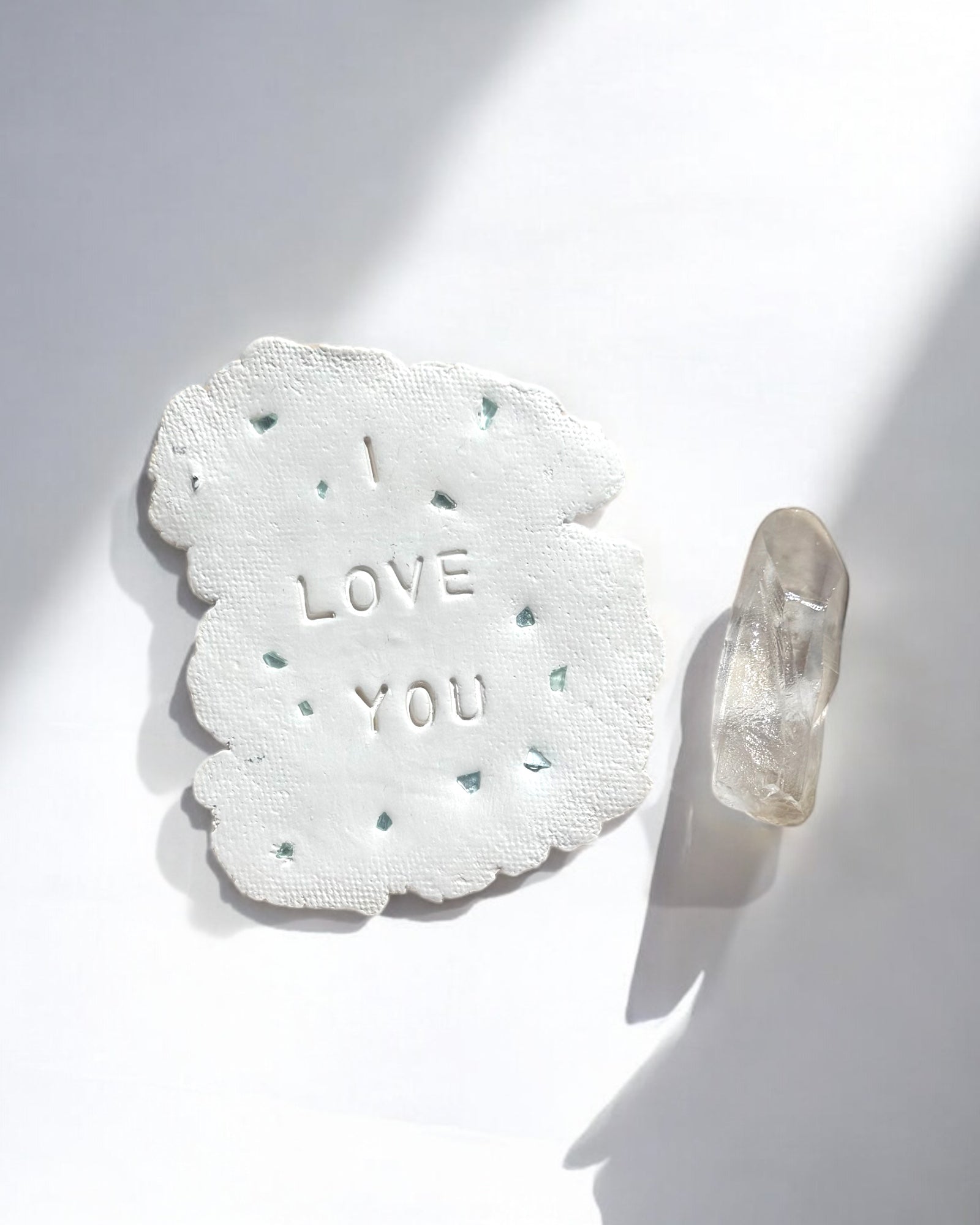 F.Y.I serves as a perpetual affirmation of love. Keep it bedside, on a coffee table, or anywhere in your daily sight. It also makes a unique and meaningful present for a beloved individual. Handcrafted with clay, each one is entirely unique