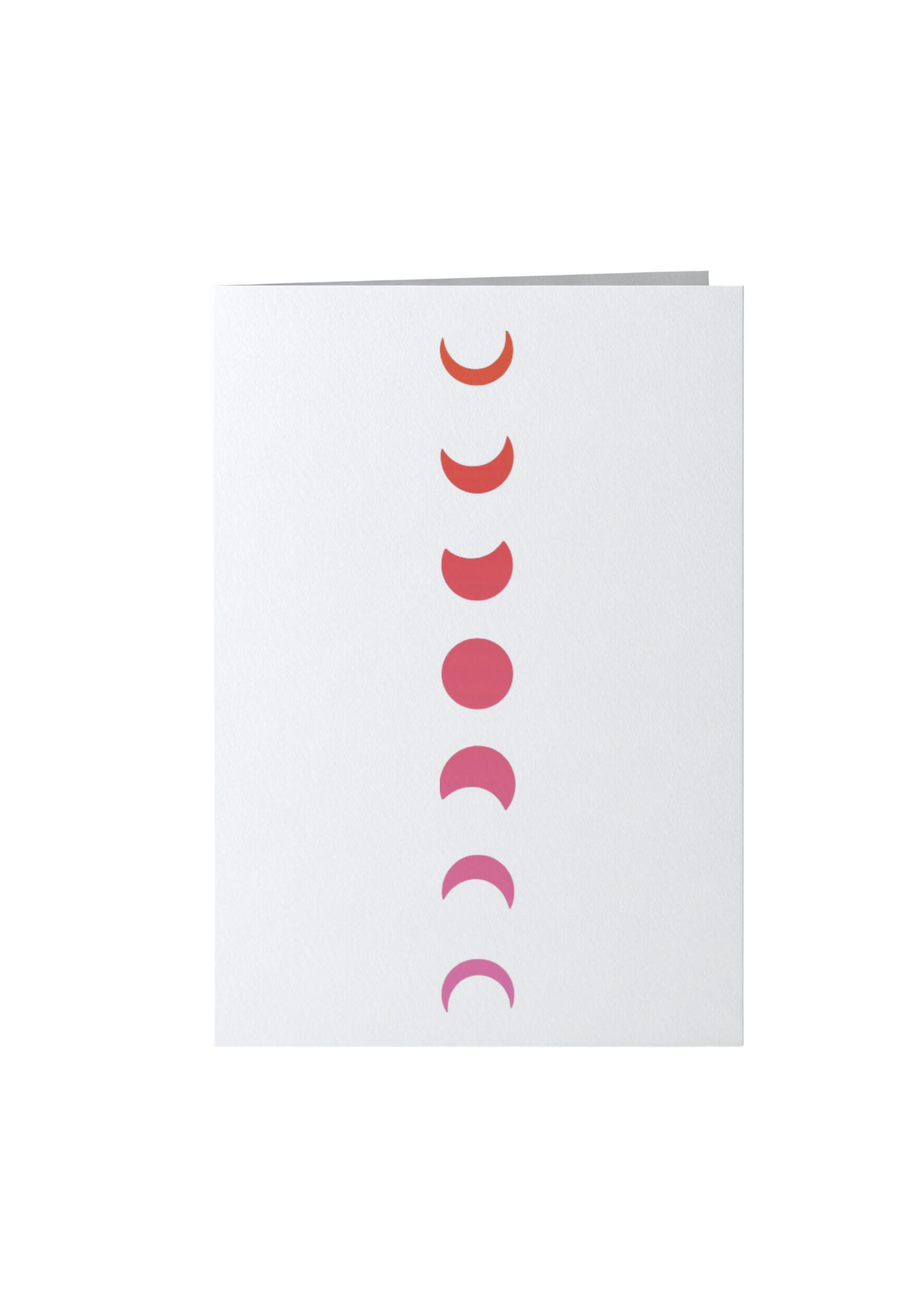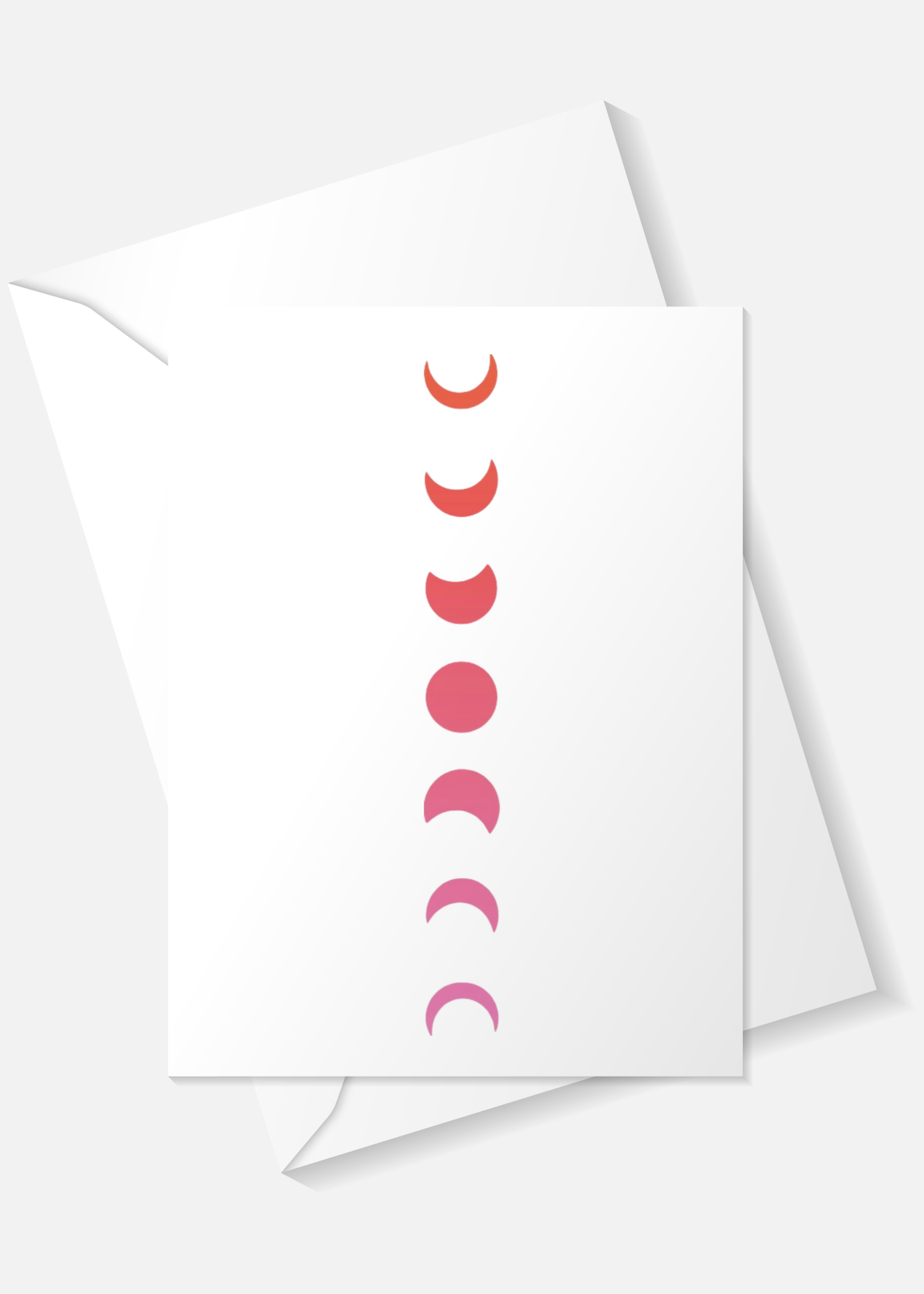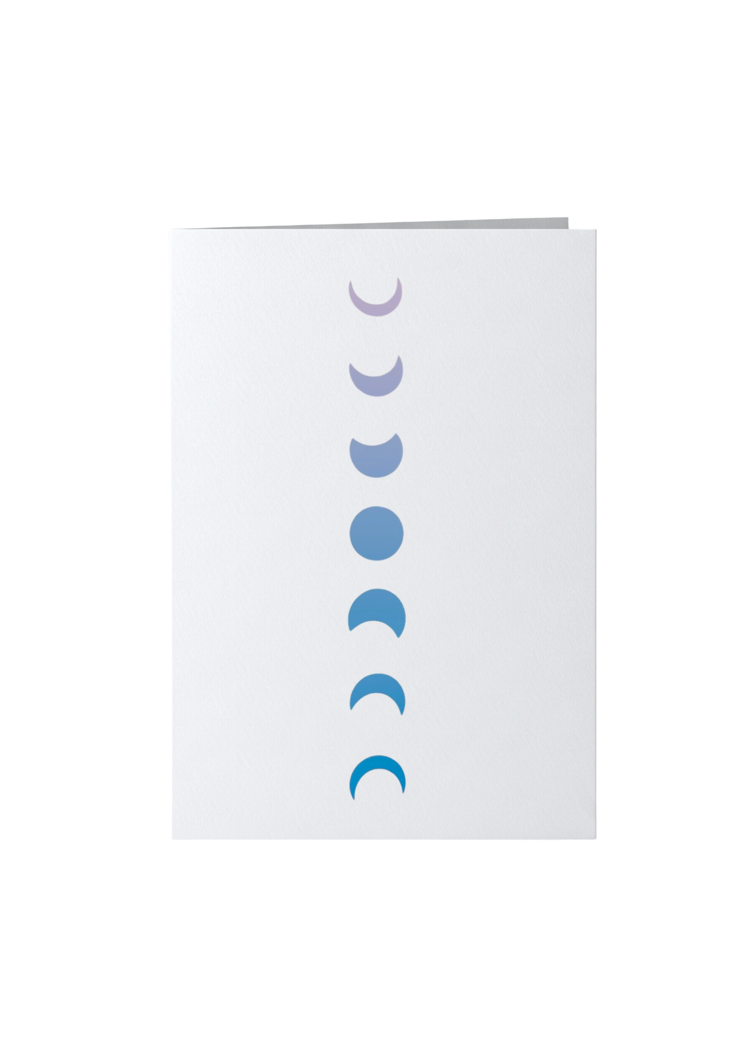 This 4x6 greeting card, crafted on cold-pressed watercolor paper, features a fun ombre moon phase design. The colors smoothly drift from one shade to another, making a simple yet stunning visual. The inside is blank for you to add your own message and it comes with a handy envelope.