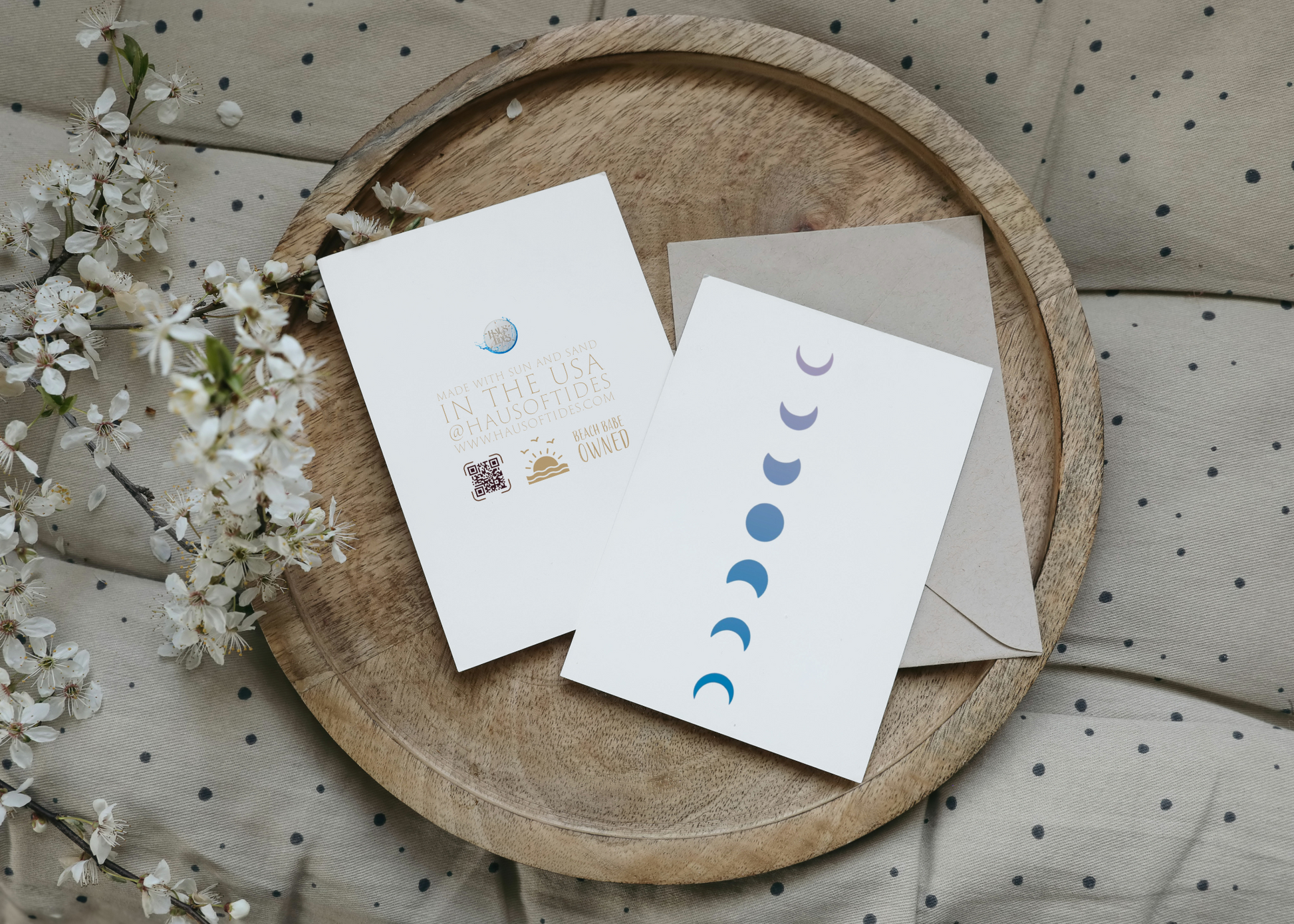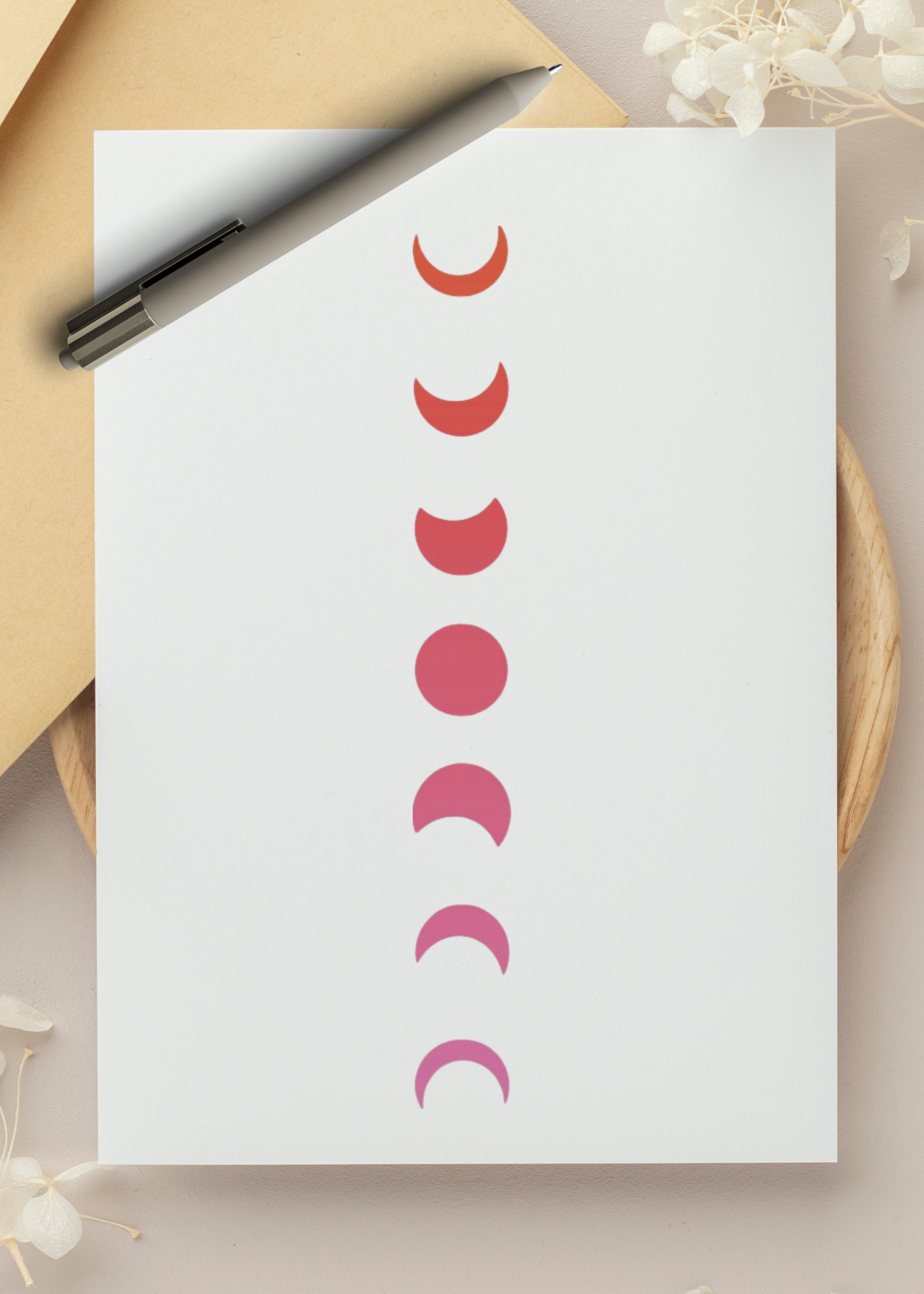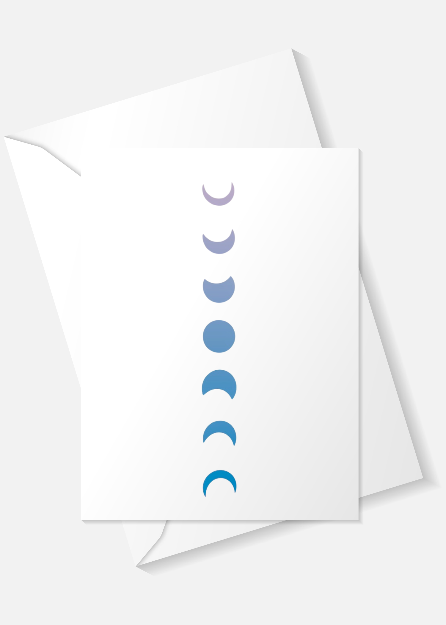 This 4x6 greeting card, crafted on cold-pressed watercolor paper, features a fun ombre moon phase design. The colors smoothly drift from one shade to another, making a simple yet stunning visual. The inside is blank for you to add your own message and it comes with a handy envelope.