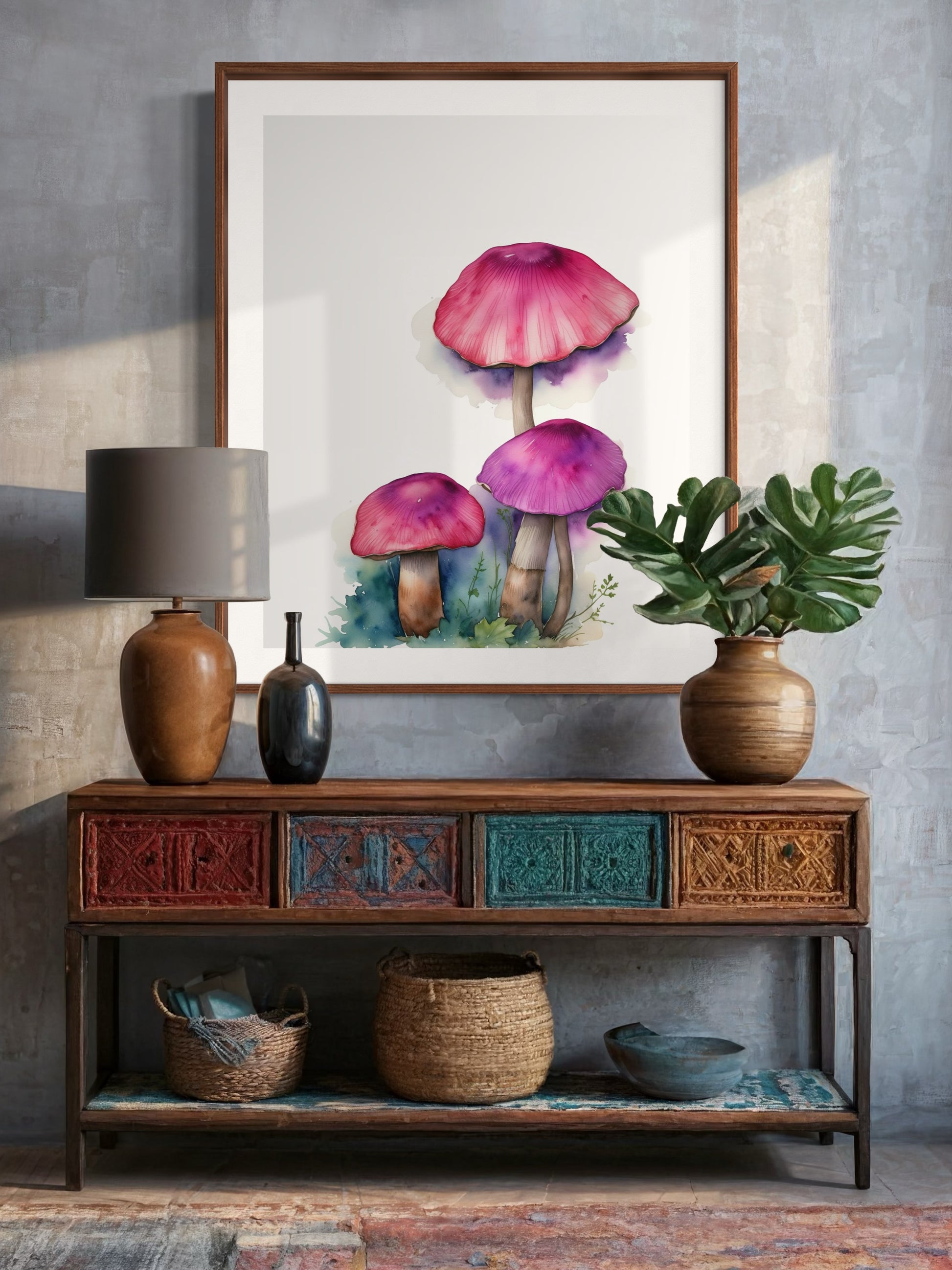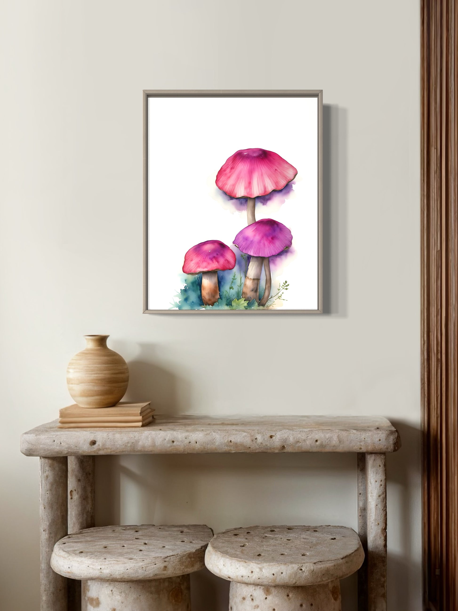 Escape to a calm and magical place with Wonderland's print featuring three mushrooms in a meadow. Reminding us that we are just a small part of the magic in this world. Available in 8x10 and 5x7 sizes.